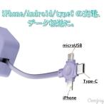 収納スッキリ 四角デザイン 3in1 Micro usb type c 充電ケーブル コードリール式 急速充電 対応 旅行 便利グッズ データ転送 ライトニング