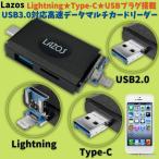 Lazos スマホ マルチカードリーダー OTG Lightning Type-C USBプラグ USB3.0 高速転送 高速データー転送 SDカード microSDカード USBメモリー USB2.0 iPhone iPad PC Android Windows Mac ノートパソコン タブレット カメラ カードリーダー 機種変更 データー移行 テレワーク 買い回り 送料無料 ポイント消化