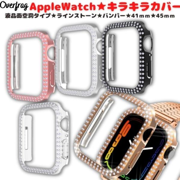 アップルウォッチ7 カバー キラキラ バンパー ケース PCカバー ラインストーン ストーン クリスタル メタル 風 耐衝撃 Series7 45mm 41mm Apple Watch 簡単装着 側面保護 軽量 かわいい おしゃれ レディース 送料無料 買い回り ポイント消化 ブラック シルバー ローズゴールド ピンク クリア 透明