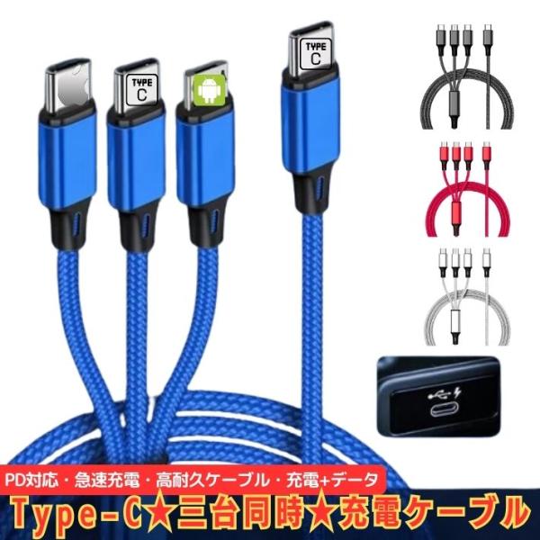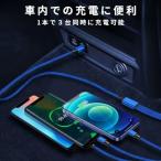 3in1 充電 ケーブル 5A急速充電 同時 充電 充電コード Type-C 充電ケーブル iPhone 高耐久ケーブル USB充電ケーブル 車内充電 テレワーク ライトニングケーブル