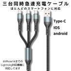 ケーブル 充電 3台同時 ライトニング Type-C Micro USB充電ケーブル 急速充電 最大 6A 120W アンドロイド iPhone 充電ケーブル 高耐久 編組ナイロン Lightning