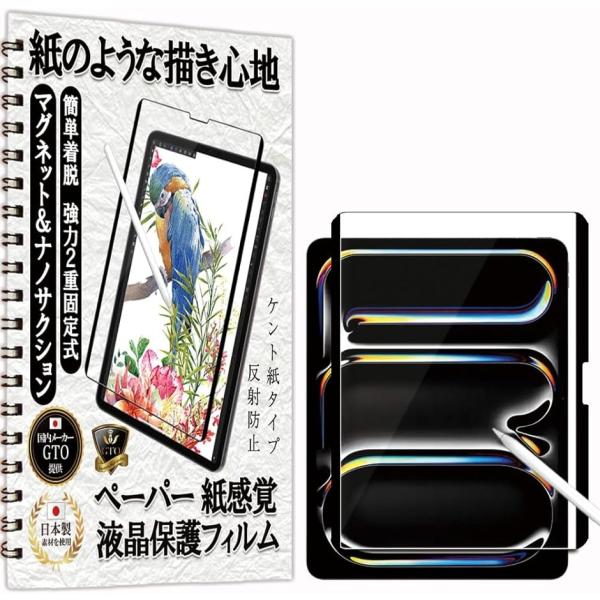 - バリエーションコード : 2b9yl23dcs商品コード2b9yxuoxtn商品名フィルム ペーパー 紙 感覚 着脱式 アンチグレア iPad Air 13 M2 2024 / iPad Pro 13 M4 2024 13インチ 用 保護フィルム マグネット & ナノサクション 2重固定式ブランドGTO CO., LTD.サイズ等13インチ iPad Air 13 M2/Pro 13 M4 (2024)「対応機種」 iPad Air 13 M2 (2024) / iPad Pro 13 M4 (2024) 13インチ 用ケント紙素材を使用した着脱式ペーパー感覚の液晶保護フィルム。「マグネット&ナノサクション着脱式」最新固定式を採用、マグネット+ナノサクションで強力固定、簡単着脱。「何度でも使用可能」ナノサクション吸着箇所は水洗いにより吸着力が復活。「ケント紙のような描き心地」 ケント紙に近い摩擦係数を採用、ケント紙に近い描き心地を実現しました。「ペン先摩耗低減」従来のフィルムより、ペン先摩耗度を50%低減。「反射防止/指紋防止」光の反射や映り込みを抑えるアンチグレア加工済、表面特殊加工によりタッチ操作をしても指紋が目立ちにくい仕様。「硬度3H」:国内基準をクリアしたフィルムで画面を保護。「耐久性」スタイラスペンで5000回の筆記試験に耐える素材を使用、フィルムの劣化を防止します。「タッチスクリーン対応」フィルムを貼ったままでも本体操作が可能です。「フィルムの上に重ねて使用可能」強力固定で現在使用しているフィルムの上に重ねて貼り付けも可能です。*2重に貼る場合タッチペンの感度やタッチ感度は下がります、予めご了承ください。※ 他ネットショップでも併売しているため、ご注文後に在庫切れとなる場合があります。予めご了承ください。※ 品薄または希少等の理由により、参考価格よりも高い価格で販売されている場合があります。ご注文の際には必ず販売価格をご確認ください。※ 沖縄県、離島または一部地域の場合、別途送料の負担をお願いする場合があります。予めご了承ください。※ お使いのモニタにより写真の色が実際の商品の色と異なる場合や、イメージに差異が生じることがあります。予めご了承ください。※ 商品の詳細(カラー・数量・サイズ 等)については、ページ内の商品説明をご確認のうえ、ご注文ください。※ モバイル版・スマホ版ページでは、お使いの端末によっては一部の情報が表示されないことがあります。すべての記載情報をご確認するには、PC版ページをご覧ください。