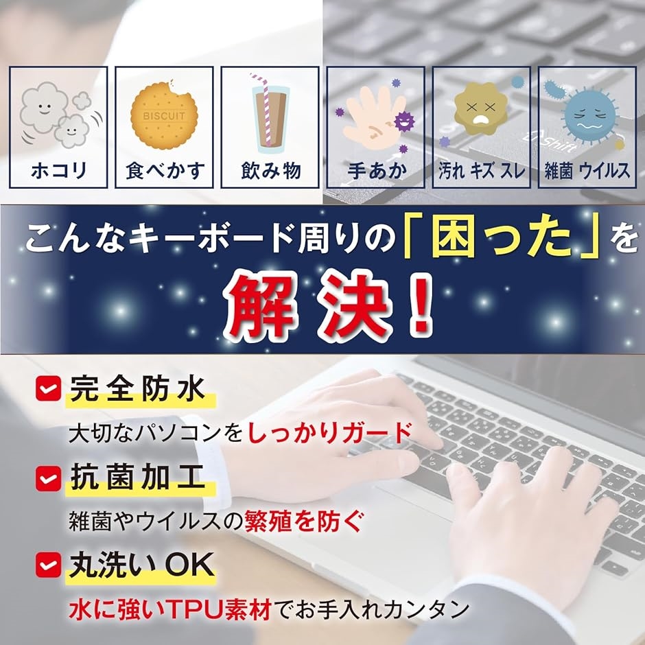 s防水で大切なパソコンをガードし、抗菌加工で雑菌やウイルスの繁殖を防ぎ、水に強いTPU素材でお手入れも簡単です。