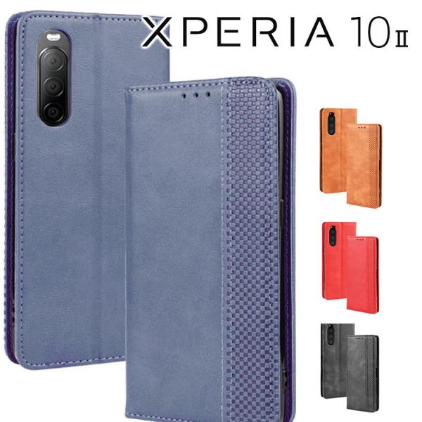Xperia 10 II 手帳型 スマホケース xperia10 ii エクスペリア10 マーク2 チェック柄 合革 レトロ 手帳 ケース チェックライン手帳ケース ポイント消化
