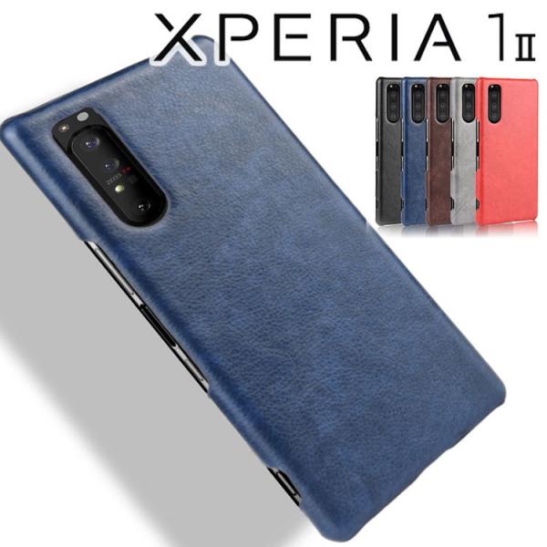 Xperia 1 II ケース 背面レザー ハードケース しっとり質感 カバー 合革 PUレザー レトロ アンティーク