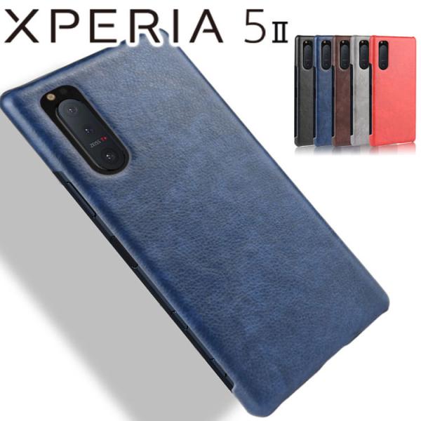 Xperia 5 II ケース 背面レザー ハードケース しっとり質感 カバー 合革 PUレザー レトロ アンティーク