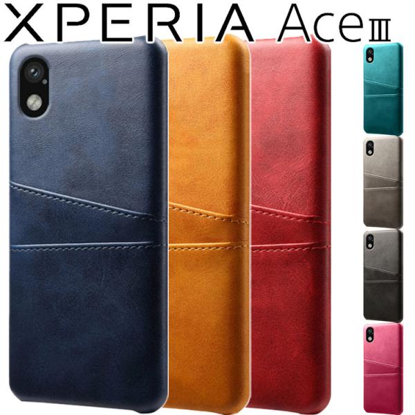 Xperia Ace III ケース カードも入る 背面レザー オシャレ ハードケース 2枚収納 シンプル レトロ