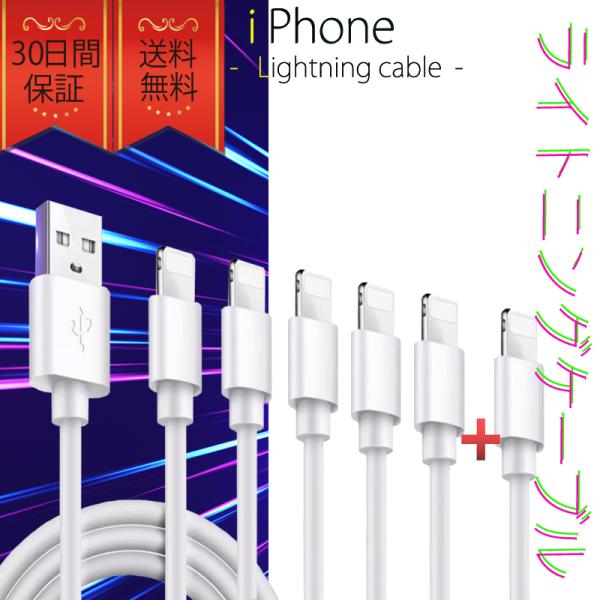 ライトニングケーブル iPhone 1m 5本セット+1本 USBケーブル 急速充電 データ通信 丈夫 強靭 安い 高耐久 最強 コスパ lightning cable 携帯用 iPad 断線防止