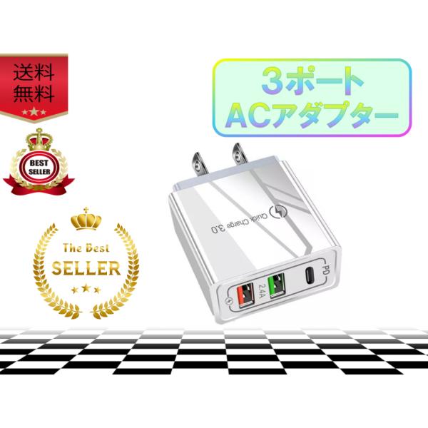 3ポートライトニングケーブル用USB&タイプCコンセント アダプター おすすめ 充電 USB 急速充電 安い apple adapter タイプC