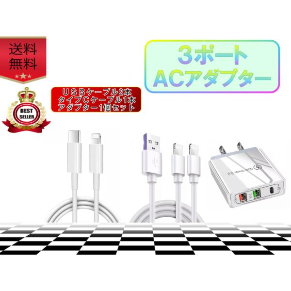 3ポートライトニングケーブル用USB&タイプCコンセント&ケーブル アダプター おすすめ 急速充電 安い apple adapter 充電 USB タイプC