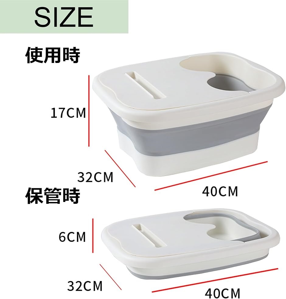 「商品詳細」足湯バケツ サイズ:幅40x32x高さ17cm(折り畳み時:高さ6cm)「材質」プラスチック「カラー」ホワイト - 楽天での商品説明(ホリック)