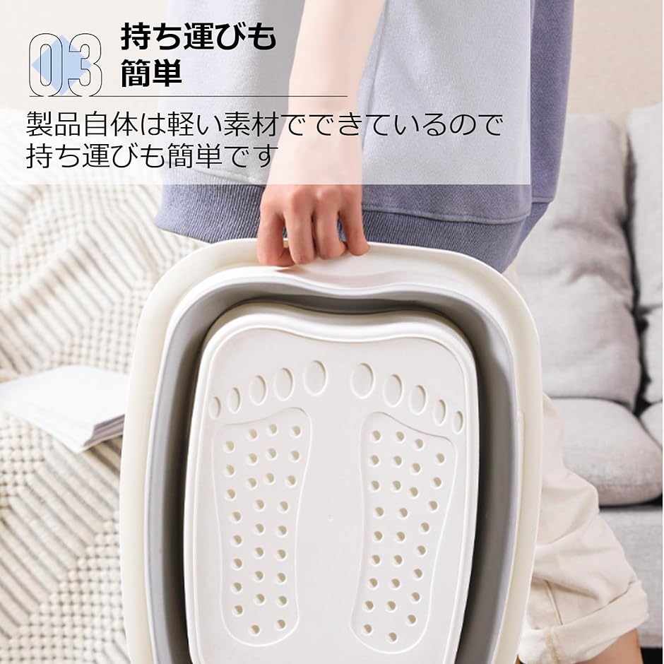 足湯 大容量 折りたたみ 蓋付き フットマッサージ フットバス 泡脚桶 持ち運び便利(ホワイト)