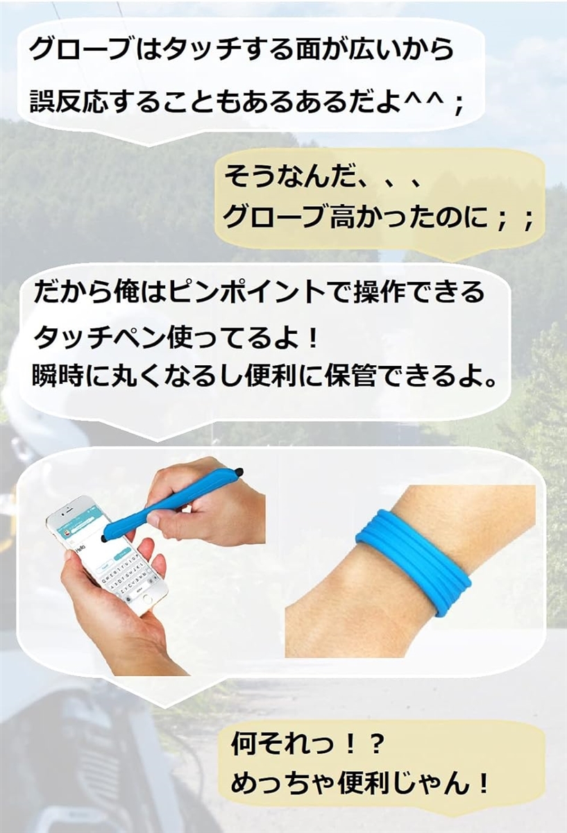 ・バイクのグローブをしたままでもスマホを操作できる画期的なタッチペンです。