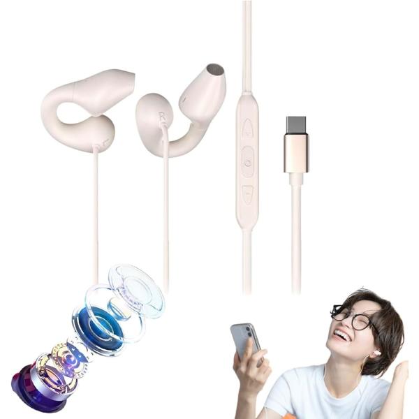 中低音改良型 イヤーカフ オープンイヤー イヤホン 有線 耳掛け 耳を塞がない 蒸れにくい メガネに干渉しない タイプ (ベージュ)