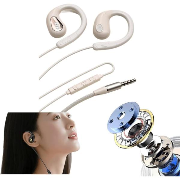 2025年 高音改良型 オープンイヤー イヤホン 有線 3.5mm マイク付き パソコン用 会議用 耳掛け 耳を塞がない (ベージュ)