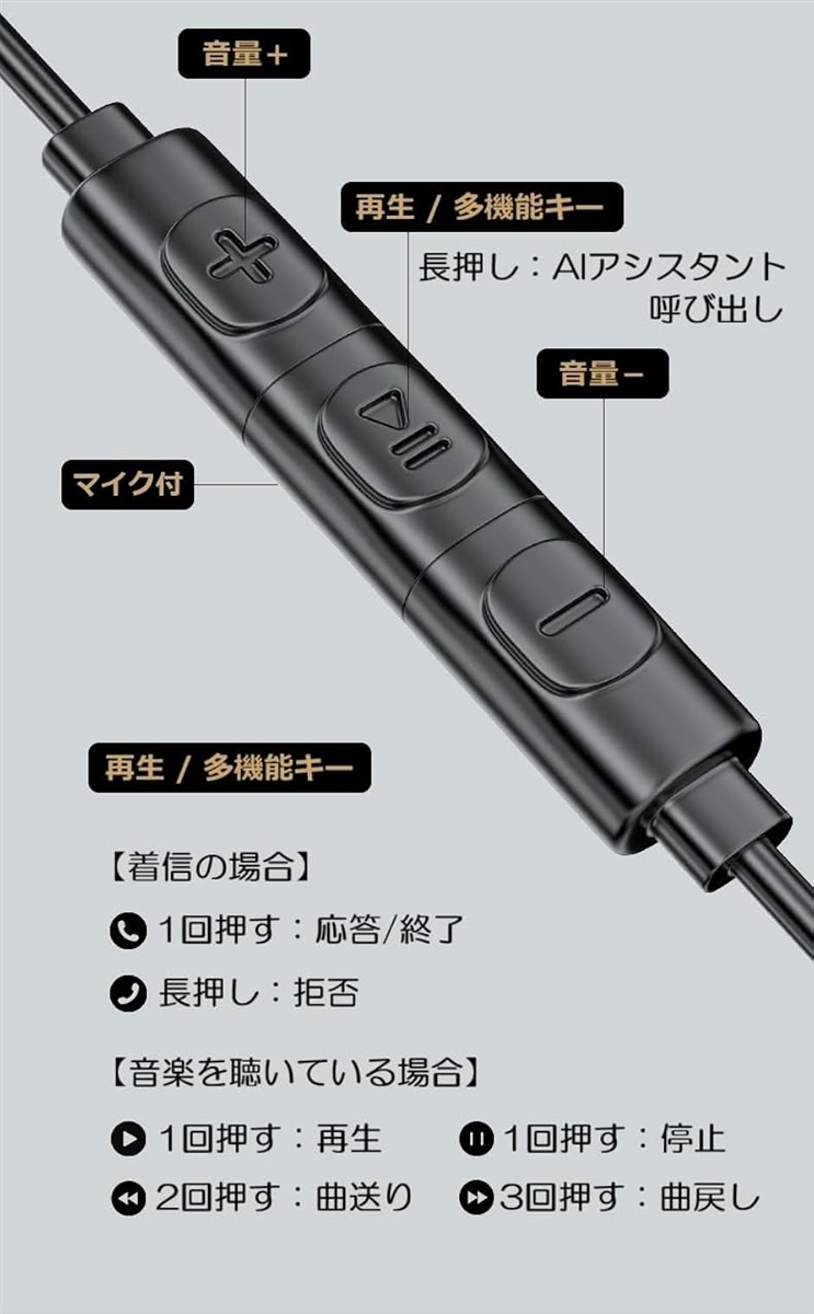 「HiFi音質・クリアな通話品質」イヤホンマイクは上質なマイクとスピーカーを内蔵され、有線接続により、音飛びや音割れ、遅延が極限まで抑えられ、よりクリアで安定した音楽再生が実現し、映画鑑賞やゲームプレイ中でも快適に使用できます。