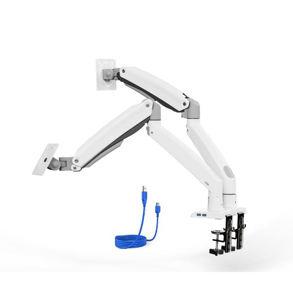 ファーノー ガススプリング式 デュアル モニターアーム ホワイト 13-35インチディスプレイ対応 HNDS33W HUANUO