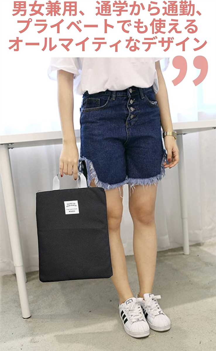 タブレットケース 小学生 小学校 中学生 学習 手提げ袋 レッスン バッグ 通学 pc 9.7 〜 11インチ(ブラック)
