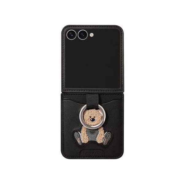 DESIGN SKIN ベア刺繍カードポケット付きケース for Galaxy Z Flip7 ブラック 仕入先在庫品