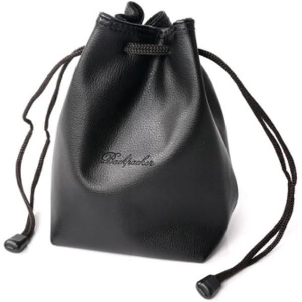 カメラバッグ カメラケース カメラポーチ 軽量 巾着 小型 インナーバッグ 裏地 フリース 一眼レフ レザー (ブラック, S)