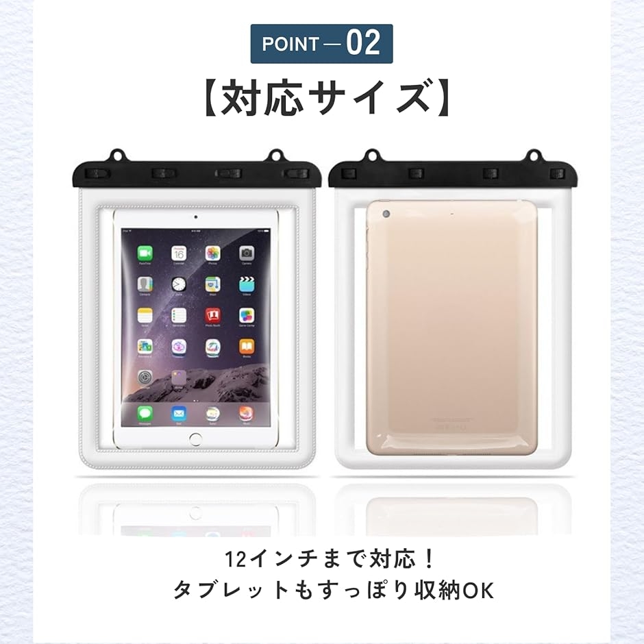 防水ケース タブレット プール 海 アウトドア お風呂 12インチ (ホワイト)