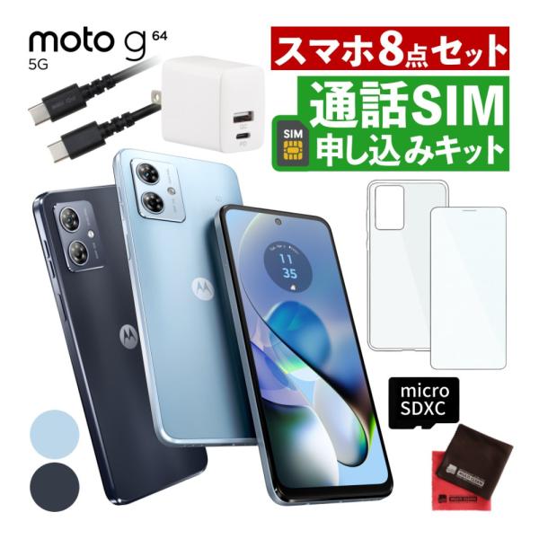 Motorola モトローラ スマートフォン moto g64 5G スペースブラック or シルバーブルー(カラー選択)& モバイルサービスパッケージ & クリアケース & 液晶保護フィルム & microSDXC 128GB & USBケーブル & AC充電器 & クロス(スマホ8点セット)