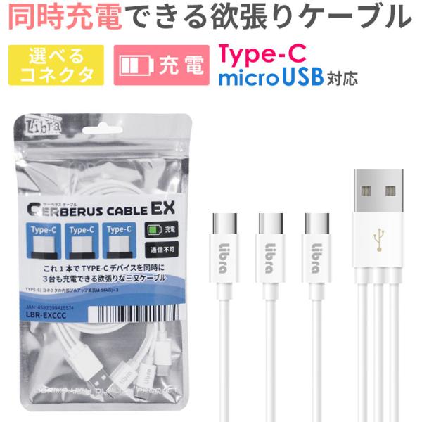 充電ケーブル 3in1 Type-C microUSB スマホ 3台 同時 タイプC typeC タブレット ゲーム機 モバイルバッテリー デジタルカメラ