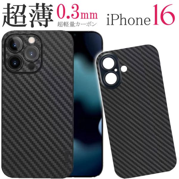 iPhone16 ケース カーボン 軽量 極薄0.3mm ハードタイプ