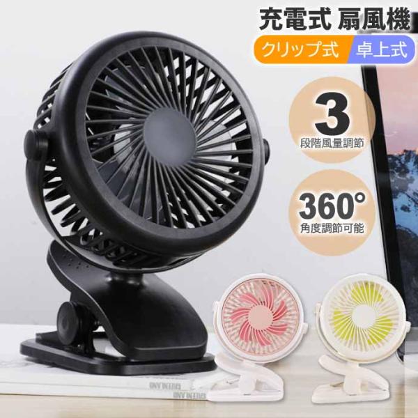 USB充電式 ハンディファン 扇風機 卓上床置き クリップ式 ベビーカーファン 車内扇風機 3段階風量調節 超静音 360度角度調節可能