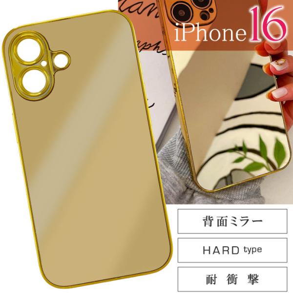 iPhone16 ケース ミラー 鏡付き ゴールド ハードtype iPhone16ケース おしゃれでカワイイ iPhone背面保護カバー Rk859