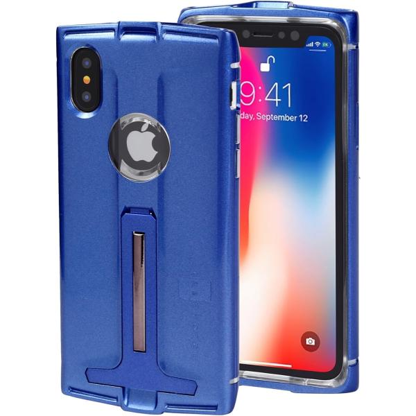 iPhone X/Xs ケース 耐衝撃 ワイヤレス充電対応 バンパー スタンド機能付 落下時の衝撃吸収 アイフォンX カバー(ブルー)
