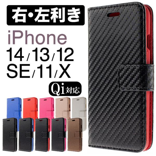 iPhone 14 ケース 手帳型 アイホン 14plus 携帯ケース アイフォン 14pro 13 13pro カーボン調 カーボン 13mini 右利き 左利き 右開き 携帯カバー