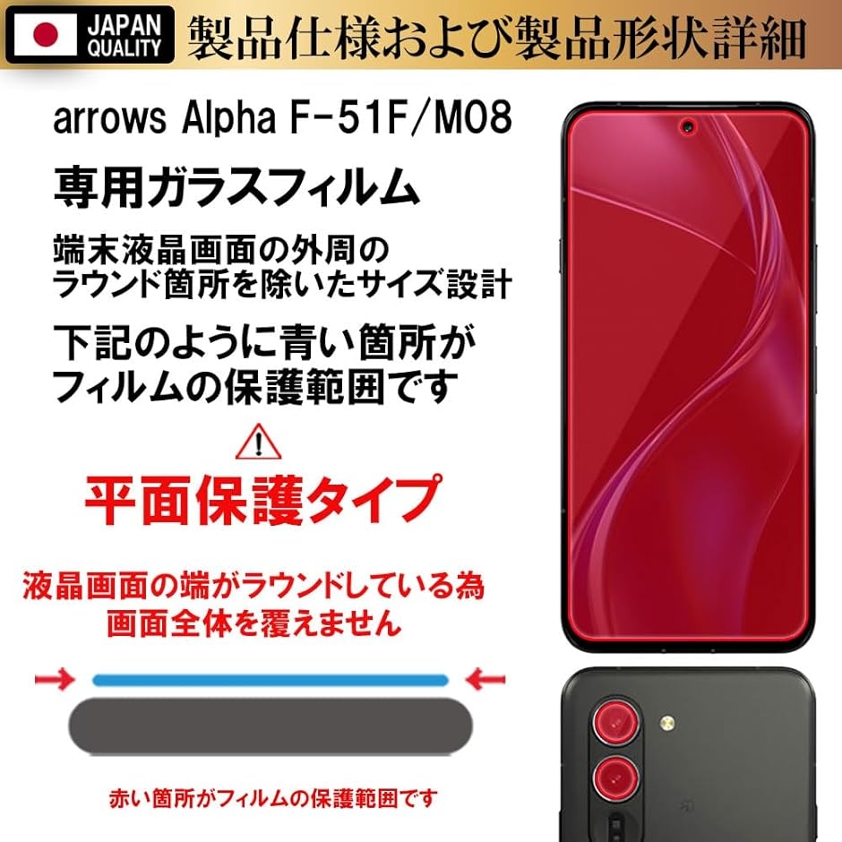 対応機種及び仕様arrows Alpha F-51F / M08 クリアガラスフィルム2枚+クリアカメラレンズ保護ガラスフィルム2枚セット。
