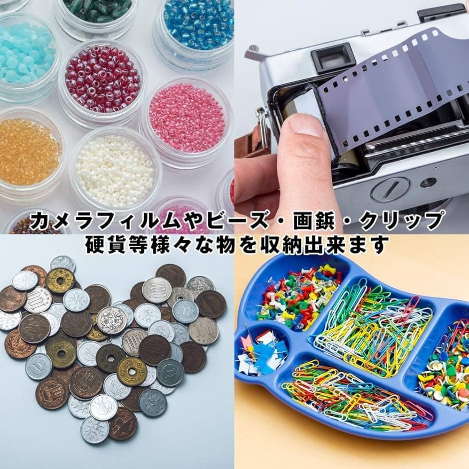 カメラのフィルムはもちろん、小さな小物やビーズ、クリップなどの収納にもお使いいただけます。