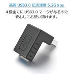 USB 3.0 直角 90度 L字型 方向変換アダプター オス×メス 高速 5Gbps 4タイプ1セット 右向き/左向き/上向き/下向き 4個セット