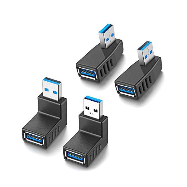 USB端子の向きを自由自在に変換。USB3.0 角度変換 90° 直角 変換アダプター 延長アダプター。上下タイプ×各1個ずつ合計2個、左右タイプ×各1個ずつ合計2個の合計4個セット。
