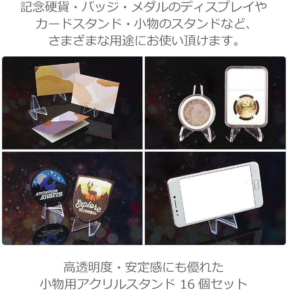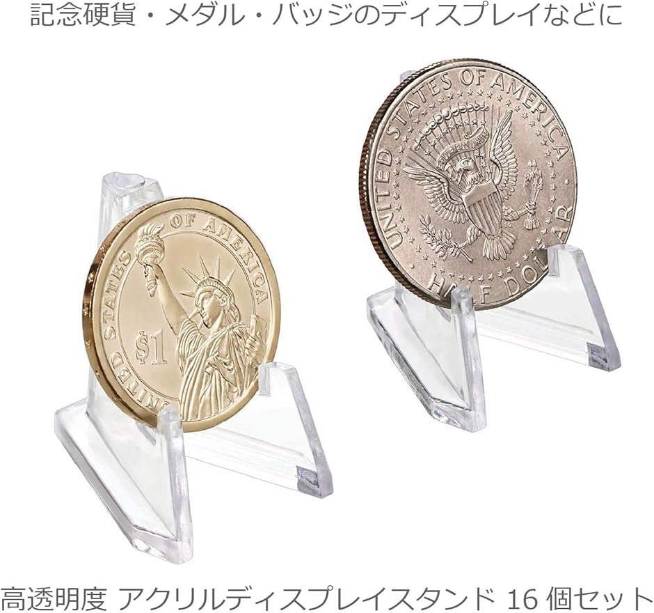 アクリル 小物 ディスプレイスタンド 小型 イーゼルスタンド 16個セット 透明 クリアー 記念硬貨 メダル バッジ(クリアー(透明))