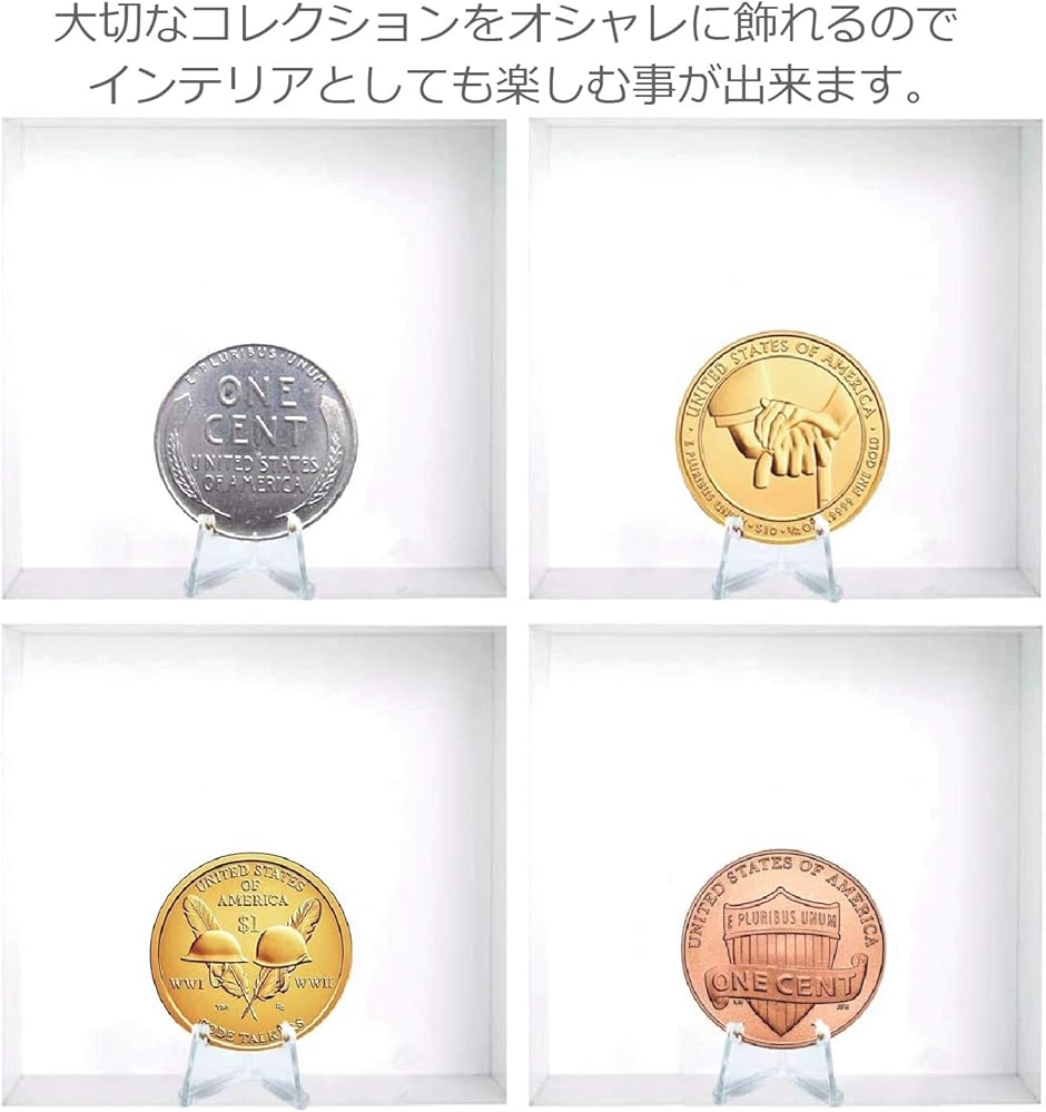 記念硬貨・バッジ・メダルのディスプレイやカードスタンド・小物のスタンドなど、さまざまな用途にお使い頂けます。
