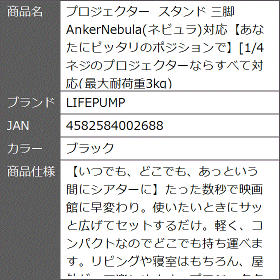 プロジェクター スタンド 三脚 AnkerNebula 最大耐荷重3kg (ブラック)