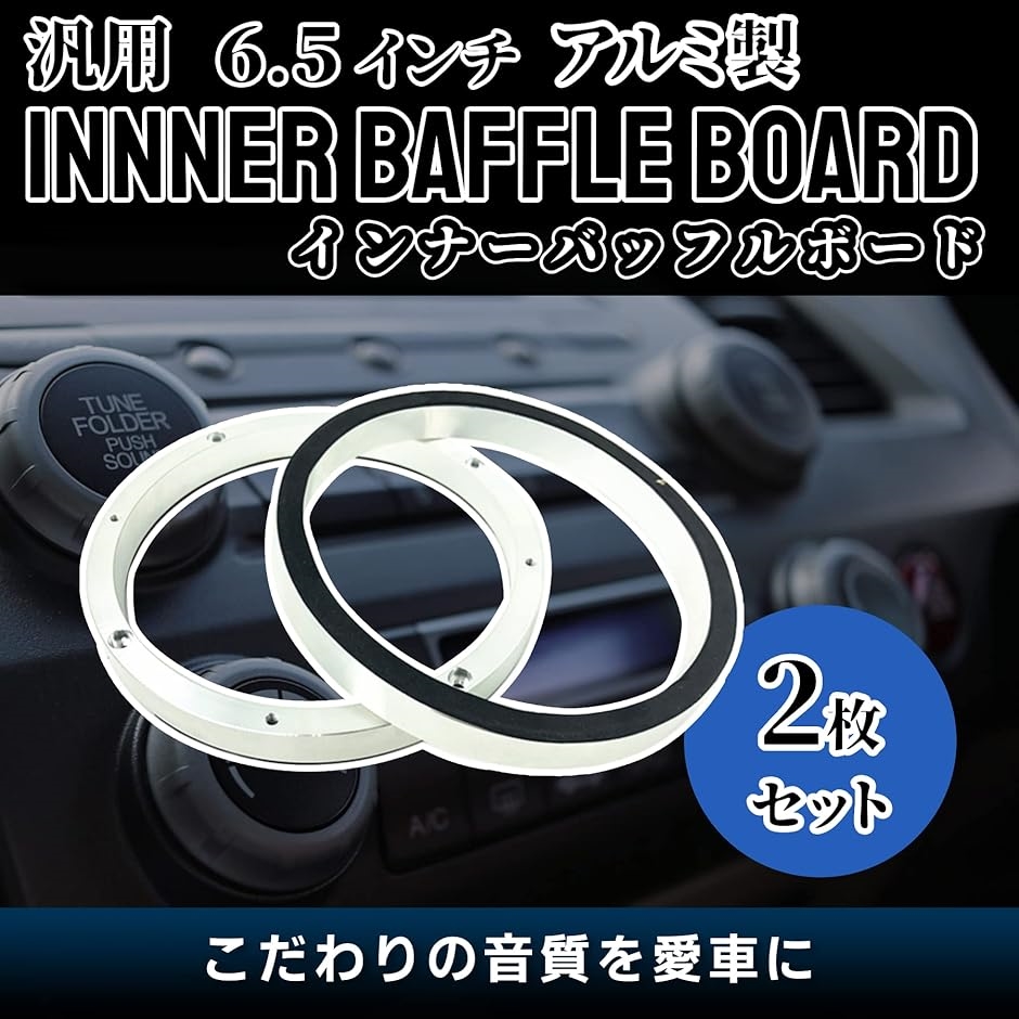 - 「音質アップに。.」スピーカー用インナーバッフル(アルミ製)になります。汎用品の為、6.5インチの取付できる車種であれば取り付け可能になります。「ハリの良い音質へ」消耗や経年劣化で音質の悪くなったインナーバッフルボードの交換に。アルミ素材により経年劣化に強い。「商品内容」バッフルボードx2,取り付けネジx8,パッキンx2「サイズ」バッフル厚15mm/バッフル外径168mm/ネジ穴ピッチ157mm/取付穴径 φ147.5mm(海外ブランドの142mm146まで取付可能)「注意事項」車種によっては一部加工が必要な場合があります。スピーカーサイズや奥行を確認し取付可否のご判断いただいた上での購入をお願い致します。※ 他ネットショップでも併売しているため、ご注文後に在庫切れとなる場合があります。予めご了承ください。※ 品薄または希少等の理由により、参考価格よりも高い価格で販売されている場合があります。ご注文の際には必ず販売価格をご確認ください。※ 沖縄県、離島または一部地域の場合、別途送料の負担をお願いする場合があります。予めご了承ください。※ お使いのモニタにより写真の色が実際の商品の色と異なる場合や、イメージに差異が生じることがあります。予めご了承ください。※ 商品の詳細(カラー・数量・サイズ 等)については、ページ内の商品説明をご確認のうえ、ご注文ください。※ モバイル版・スマホ版ページでは、お使いの端末によっては一部の情報が表示されないことがあります。すべての記載情報をご確認するには、PC版ページをご覧ください。