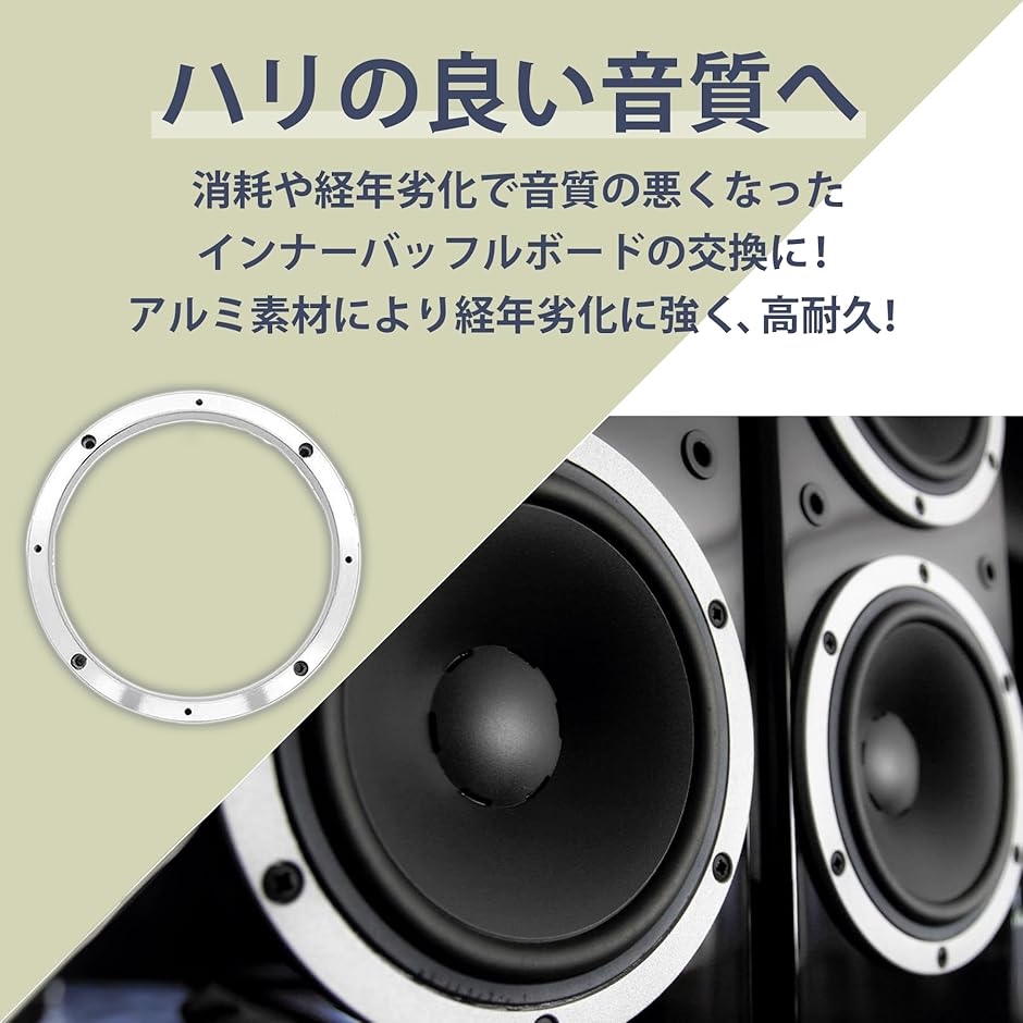「ハリの良い音質へ」消耗や経年劣化で音質の悪くなったインナーバッフルボードの交換に。アルミ素材により経年劣化に強い。