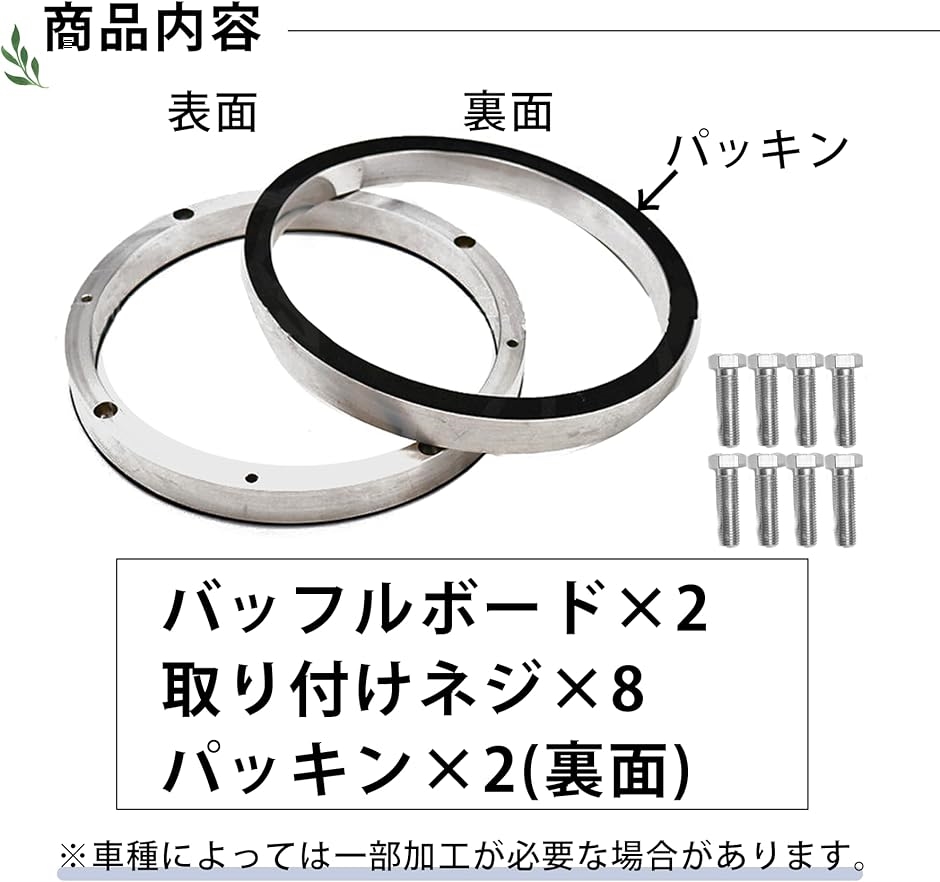 「商品内容」バッフルボードx2,取り付けネジx8,パッキンx2