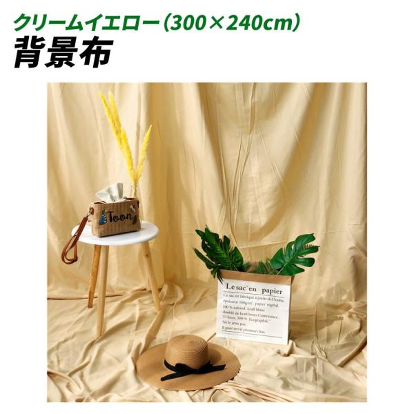 背景布 300cm*240cm 無地 生地 物撮り 撮影用 内装 写真 多用途 シワが付きにくい バック スクリーン スタジオ 布 クロス (クリームイエロー)