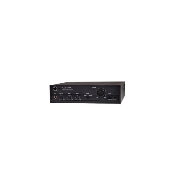 - 【仕様】 ●Lo/Hi切替形50W+50Wの高出力デジタルアンプ。 ●音質にこだわるオーナー様への要求に答えるBass/Trebleイコライザー搭載。 ●従来機種より音質の向上とタブレット・スマートフォン接続時のノイズ軽減設計。 ※ノイズ対策は全ての端末機種を検証している訳ではありません。 ●電源電圧:AC100V 50/60Hz ●最大出力:・Lo:50W+50W・Hi:40W+40W(250Ω/100V) ●入力感度及び入力インピーダンス:・入力1/2:570mV / 10kΩ・AUX:180mV /5kΩ・MIC:1.2mV / 600Ω ●周波数特性:・Lo:30II20kHz(±3dB)・Hi:150II15kHz(±3dB) ●トーンコントロール特性:・BASS:100Hz ±10dB・TREBLE:10kHz ±10dB ●出力負荷インピーダンス:・Lo:4ΩII16Ω・Hi:250Ω(100V) ●消費電力:38W(電気用品安全法による表示) ●使用温度範囲:-10℃〜+50℃(結露しないこと) 筐体 ●外形寸法 (W×H×D):250×67.5×257mm ●質量:
