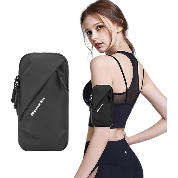 アームバンド ランニング スマホ アームポーチ 防水 面ファスナー ユニセックス(ブラック, 18x9.5x4cm)