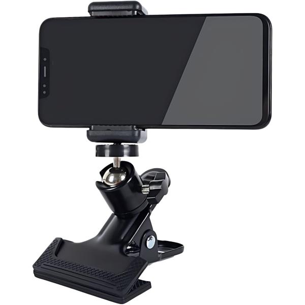 三脚が設置できない場所でも、クリップで簡単にセットアップ可能。