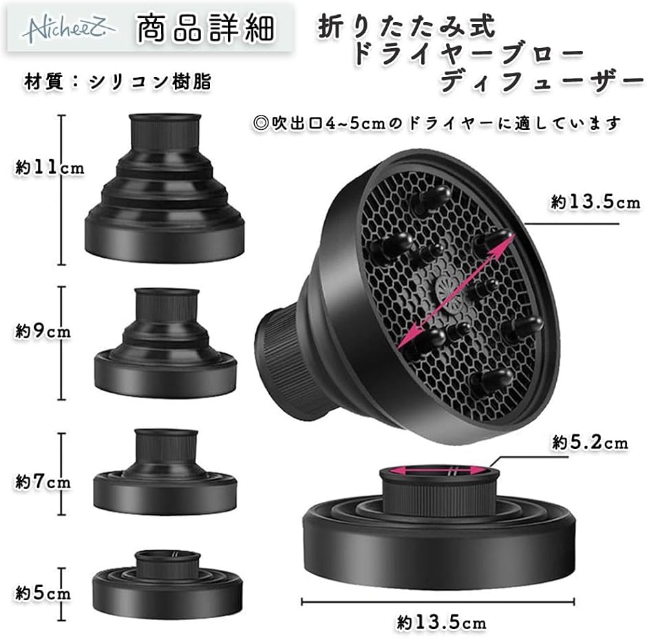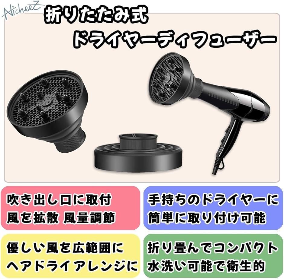 ヘアドライヤーディフューザー 折りたたみ式 アタッチメント 風拡散 風量調節 スタイリングツール ヘアサロン シリコン (ブラック)