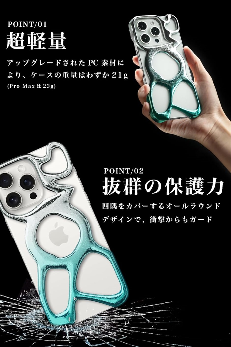 - バリエーションコード : 2b9dkf1ggx商品コード2b9dkfnnyf商品名iPhone AM Emptiness Phone Case MagSafe対応 軽量 流動メタルデザインブランドAngry Miaoカラーシャイニーシルバーサイズ等iPhone 16 Pro※ 他ネットショップでも併売しているため、ご注文後に在庫切れとなる場合があります。予めご了承ください。※ 品薄または希少等の理由により、参考価格よりも高い価格で販売されている場合があります。ご注文の際には必ず販売価格をご確認ください。※ 沖縄県、離島または一部地域の場合、別途送料の負担をお願いする場合があります。予めご了承ください。※ お使いのモニタにより写真の色が実際の商品の色と異なる場合や、イメージに差異が生じることがあります。予めご了承ください。※ 商品の詳細(カラー・数量・サイズ 等)については、ページ内の商品説明をご確認のうえ、ご注文ください。※ モバイル版・スマホ版ページでは、お使いの端末によっては一部の情報が表示されないことがあります。すべての記載情報をご確認するには、PC版ページをご覧ください。「革新と美しさの融合」 スマートフォン保護ケースは数多くありますが、AM Emptiness Phone Case for iPhone 16 Pro / Pro Maxは、デザインで独自性を追求したケースです。流れるようなメタル調のボディは、ただの保護機能を超えて、洗練されたスタイルを提供します。軽量でありながら、耐久性に優れ、MagSafe充電器にも対応。メタルの質感を楽しみながら、iPhoneを守ります。「「透明」デザイン」 工業デザインの限界を打破するべく、AM Emptiness Phone Caseは「透明」というコンセプトをベースに、iPhoneの美しさを引き立てるデザインを実現。背面の仕上げは、iPhone本来のカラーと質感を露出させ、iPhoneの個性を活かします。ケースは有機的なフォルムで、一体化したような仕上がり。まるで液体金属がiPhoneを包み込むかのような、滑らかな曲線美が特徴です。「機能美と放熱性を両立」 見た目が美しいだけではなく、AM Emptiness Phone Caseのくり抜きデザインは、従来のケースよりも放熱性に優れています。長時間の使用でも熱がこもらず、iPhoneのパフォーマンスを発揮させます。「高級感あふれるデザイン」 3種類の異なるメタル調仕上げ、シャイニー、マット、そして新登場のフロスト仕上げから選べます。フロスト仕上げには、通常は高級陶磁器にしか使用されない技術を採用し、独特の質感と手触りを提供。シンプルでありながらも先進的なデザインで、iPhoneの美しさを引き立てます。「抜群の保護力と軽量化」 見た目に反して、AM Emptiness Phone CaseはしっかりとiPhoneを守ります。四隅をカバーするオールラウンドデザインで、衝撃からも安心。アップグレードされたPC素材により、ケースの重量はわずか21g(Pro Maxは23g)。軽さを保ちながらも、耐久性と落下防止性能を向上させました。「MagSafe対応でスマート充電」 ケースにはMagSafe用のマグネットが内蔵されており、公式およびサードパーティ製MagSafe充電器に対応。ケースを装着したまま、スマートにワイヤレス充電が可能です。形状と機能が融合したAM Emptiness Phone Caseは、あらゆるシーンであなたのiPhoneを引き立てます。「特別なパッケージ」 パッケージもまた、独自性を持っています。「Emptiness(空洞)」をテーマにデザインされた真空アルミホイル袋が、ケースをしっかりと保護し、配送時にもAM Emptiness Phone Caseの美しいデザインを保ちます。
