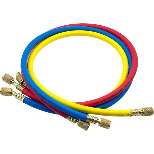 MONOSTORE 汎用 エアコンガス チャージホース R410a R32 3本セット 1/4SAE 車 (マルチカラー, 90cm)