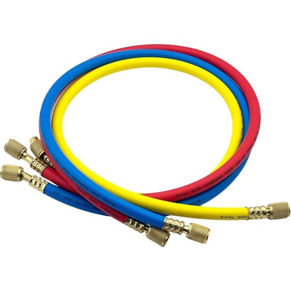 【互換品】MONOSTORE 汎用 エアコンガス チャージホース 3本セット R134a R12 R22 車(マルチカラー, 120cm)